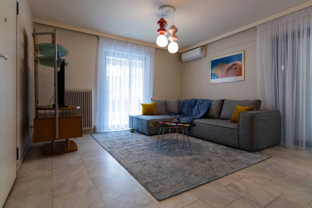 Step into Blue Verve, a premium two-bedroom retreat where bold color meets refined comfort. Enjoy curated design, soft textures, and modern amenities just moments from the Athenian Riviera.Ideal for city adventurers, business travellers of long or medium term or individuals who decide to take a break within the city limits. A few minutes walk from the marina and the local beach this apartment benefits from its location and high quality materials and design.