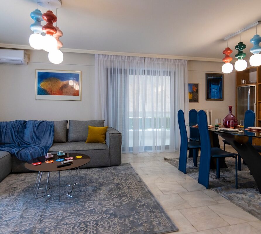 Step into Blue Verve, a premium two-bedroom retreat where bold color meets refined comfort. Enjoy curated design, soft textures, and modern amenities just moments from the Athenian Riviera.Ideal for city adventurers, business travellers of long or medium term or individuals who decide to take a break within the city limits. A few minutes walk from the marina and the local beach this apartment benefits from its location and high quality materials and design.