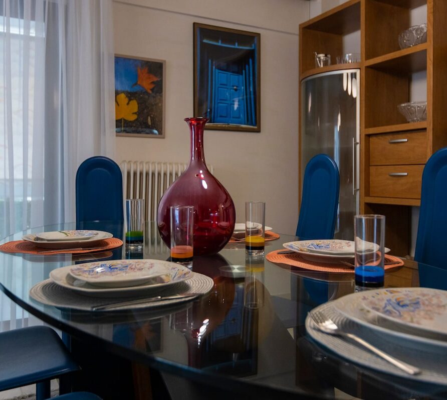 - Amenities: Air Conditioning, Bed Linens, Blender, Board Games, Body Soap, Cleaning Before Checkout, Cleaning Products, Clothes Drying Rack, Coffee, Coffee Maker, Conditioner, Cooking Basics, Dining Table, Dishes and Silverware, Elevator, Essentials, Fire Extinguisher, First Aid Kit, Freezer, Hair Dryer, Hangers, Heating, Hot Water, Hot Water Kettle, Iron, Kitchen, Laptop-Friendly Workspace, Long-Term Stays Allowed, Microwave, Mosquito Net, Nespresso machine, Outdoor Seating, Oven, Patio, Patio or Balcony, Private living room, Refrigerator, Room-Darkening Shades, Shampoo, Shower Gel, Smoke Detector, Stove, Street Parking, Toaster, TV, Wardrobe or Closet, Washer, Wine Glasses, Wireless Internet