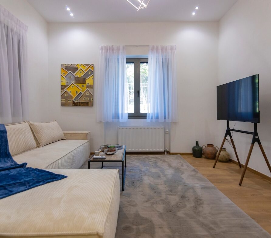 Kick back and relax in this calm, stylish unit, walking distance from the seafront, the village of Neoi Epivates and all the stores and restaurants of it. This unit which is part of a bouquet (there are other 2 units in the location, “Sea” and “Sun”), is the perfect escape for the ones seeking a beach life very close to a big city. Located 4,5 km away from Thessaloniki airport and just a 20 minute drive to the city while being in a walking distance from the seafront.